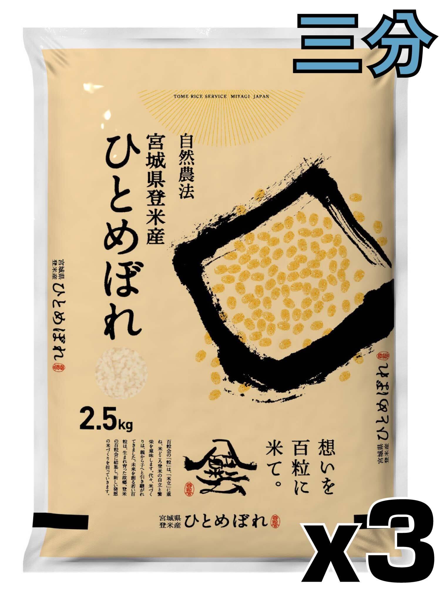 令和7年産 登米産 ひとめぼれ 三分づき 7.5kg 農薬・化学肥料不使用栽培米