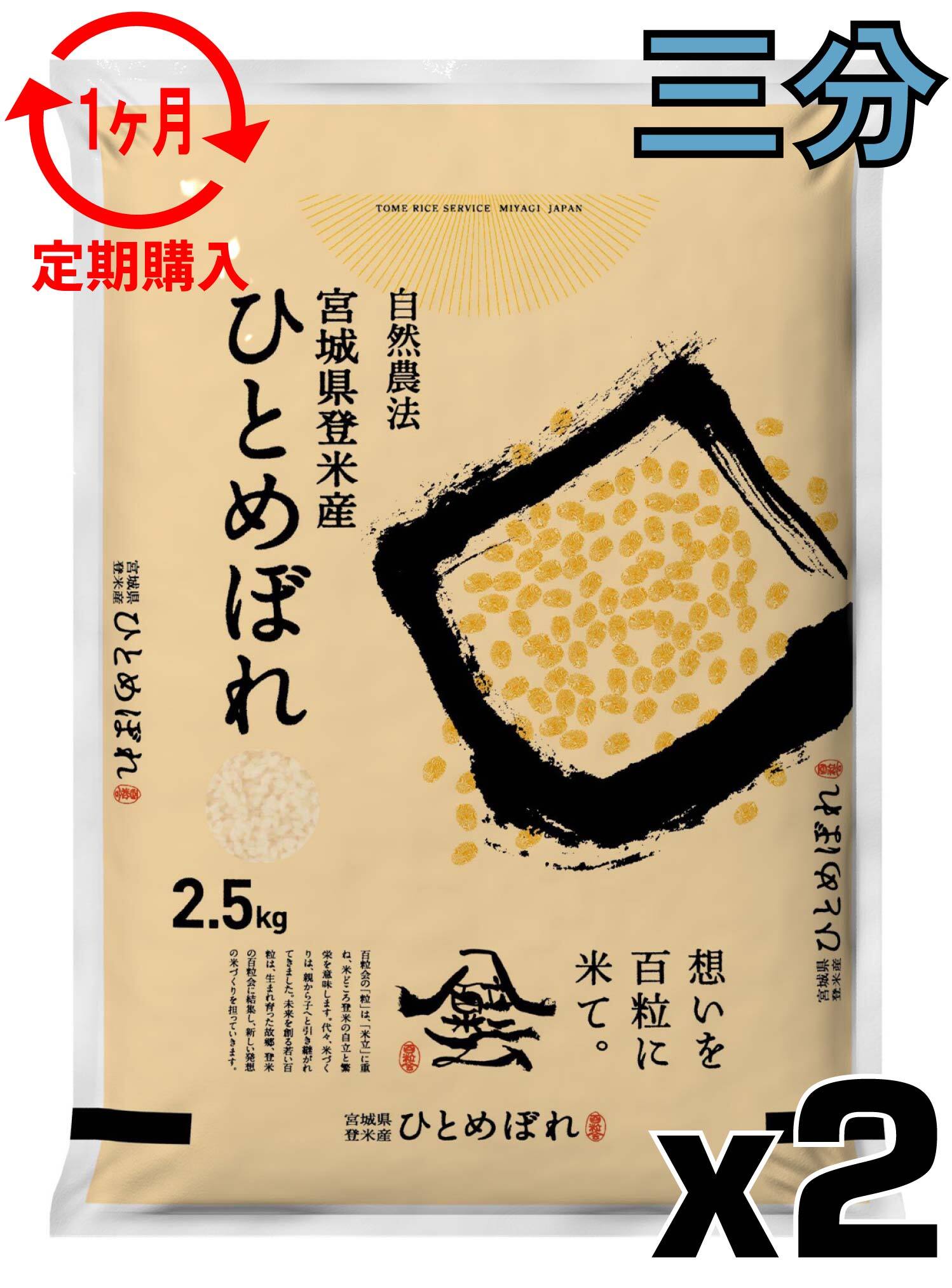 定期1ヶ月 令和7年産 登米産 ひとめぼれ 三分づき 5kg 農薬・化学肥料不使用栽培米