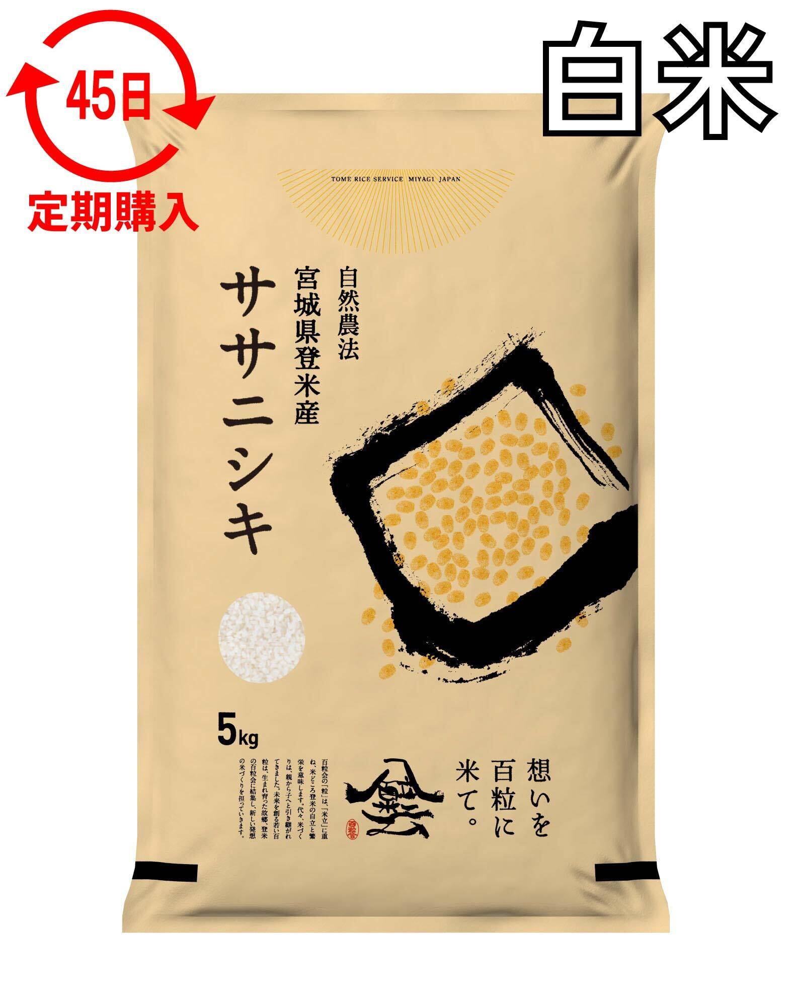 定期45日 令和7年産 登米産 ササニシキ 白米 5kg 農薬・化学肥料不使用栽培米