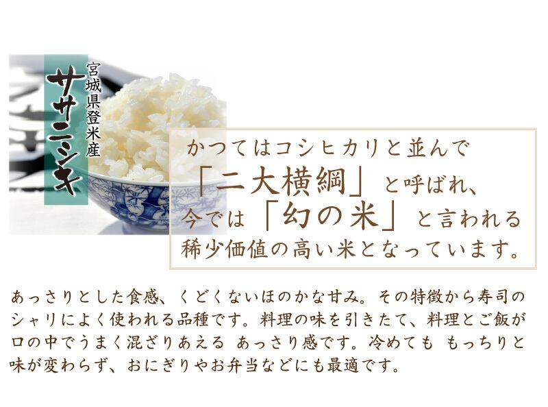 ササニシキはさっぱり系、粘りが少なめであっさりした食感です。