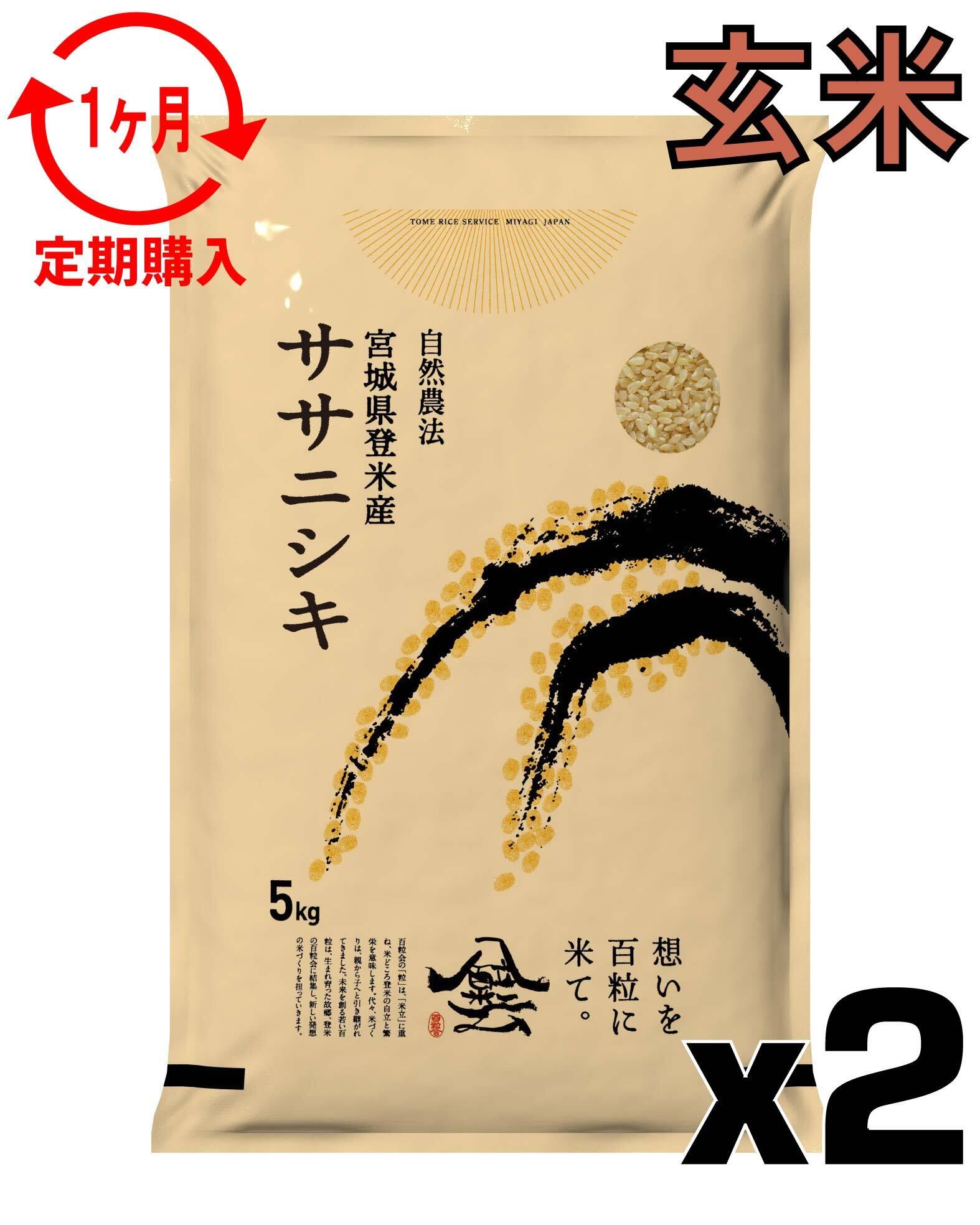 定期1ヶ月 令和7年産 登米産 ササニシキ 玄米 10kg 農薬・化学肥料不使用栽培米