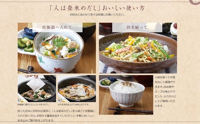 宮城県登米産の原木椎茸、宮城県三陸産真昆布など5種の素材をブレンドした