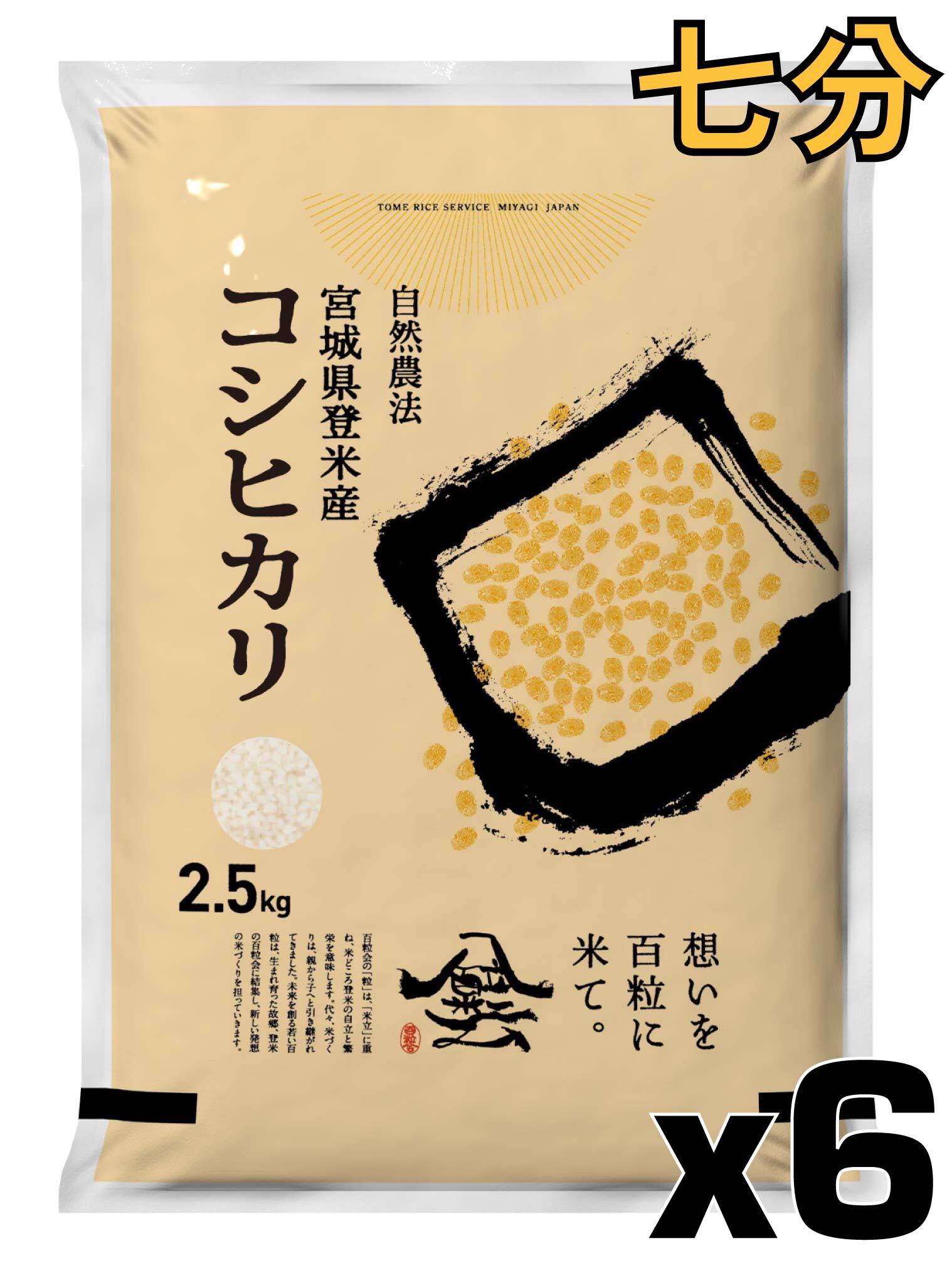 令和7年産 登米産 コシヒカリ 七分づき 15kg 農薬・化学肥料不使用栽培米