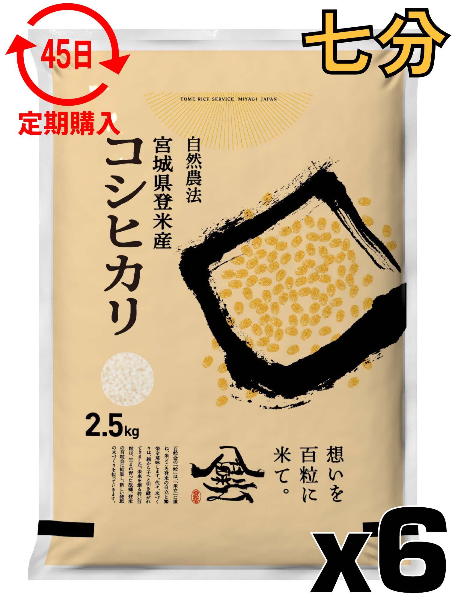 定期45日 令和7年産 登米産 コシヒカリ 七分づき 15kg 農薬・化学肥料不使用栽培米