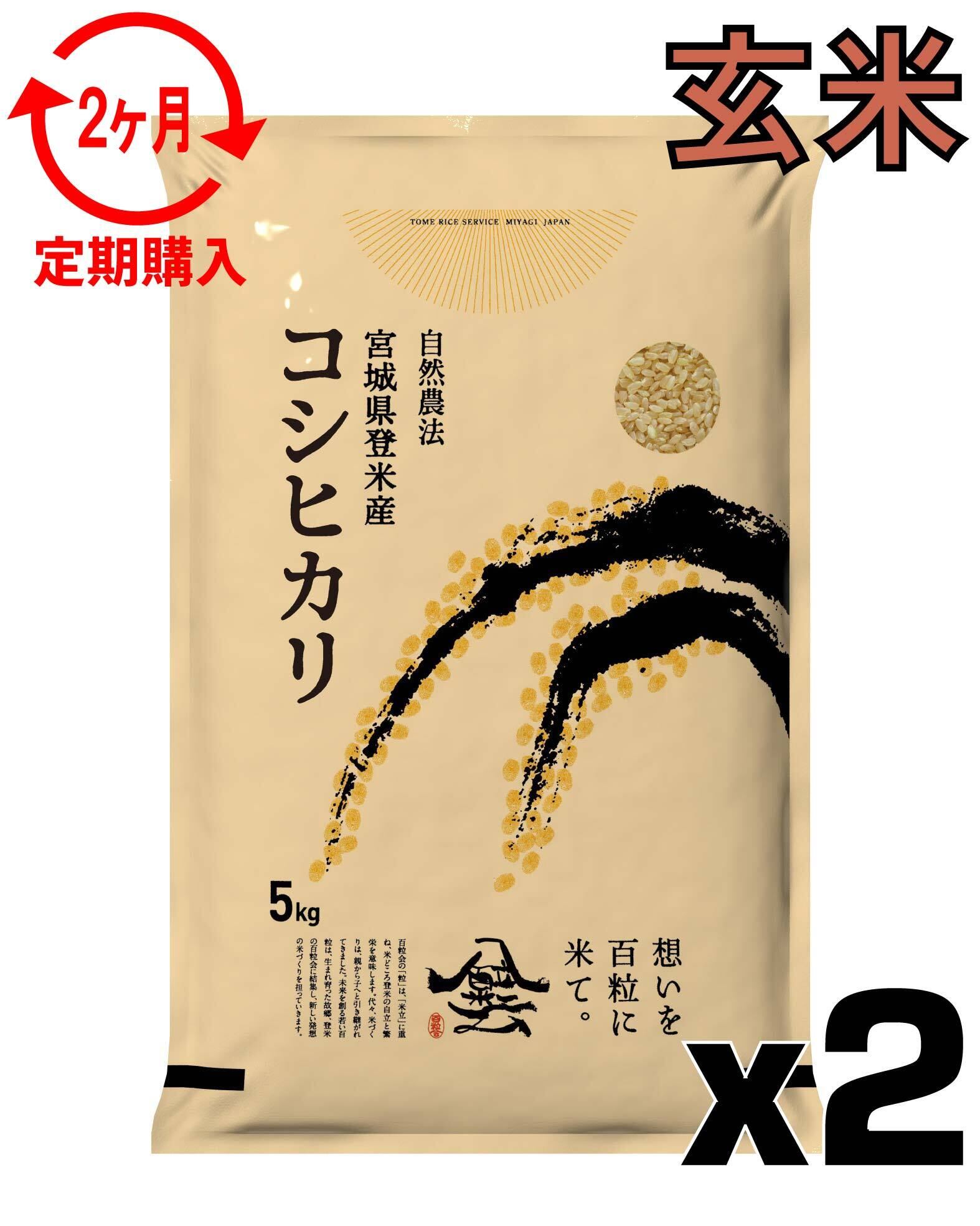定期2ヶ月 令和7年産 登米産 コシヒカリ 玄米 10kg 農薬・化学肥料不使用栽培米