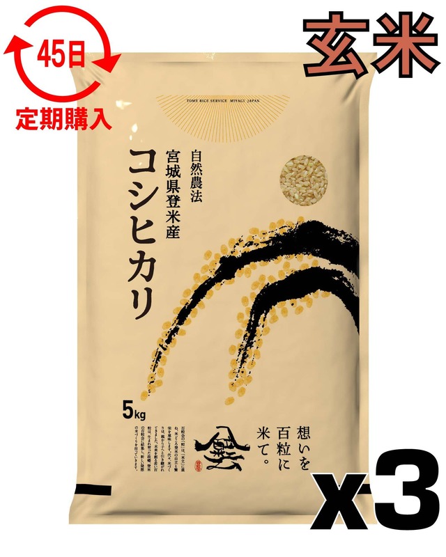 定期45日 令和7年産 登米産 コシヒカリ 玄米 5kg 農薬・化学肥料不使用栽培米