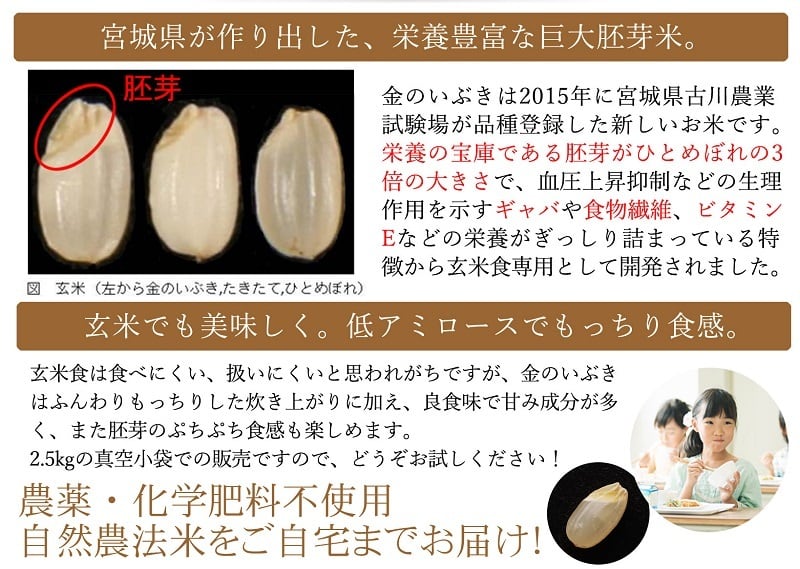 「金のいぶき」は2015年に宮城県古川農業試験場が品種登録をした新しいお米です。
